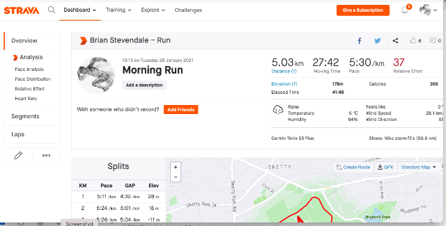 | 1 | 2021-01-26 12:00:54 | Brian Stevendale | 00:27:42 | 584.00 | swansea harriers | Link | ![]() |
