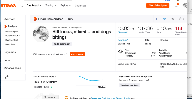 | 3 | 2021-01-03 16:19:21 | Brian Stevendale | 01:26:19 | 223.10 | swansea harriers | Link | ![]() | |
