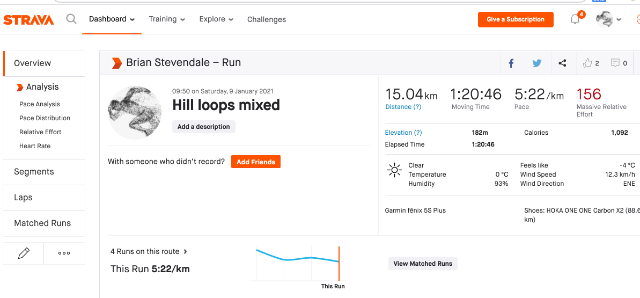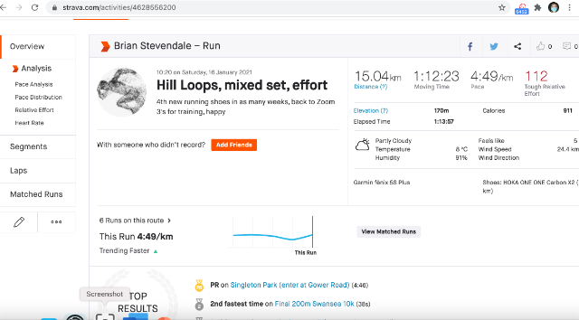 | 6 | 2021-01-09 12:32:27 | Brian Stevendale | 01:20:46 | 597.11 | swansea harriers | Link | ![]() | |