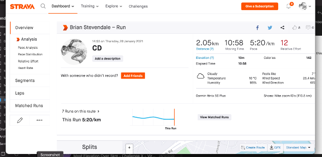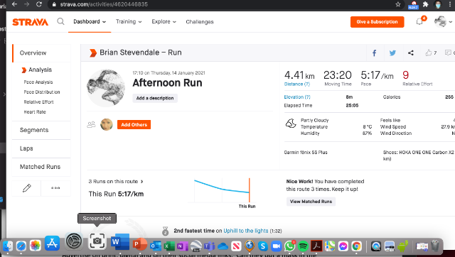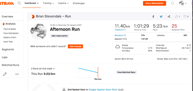 | 11 | 2021-01-14 20:33:45 | Brian Stevendale | 00:23:20 | 26.24 | swansea harriers | Link | ![]() | |