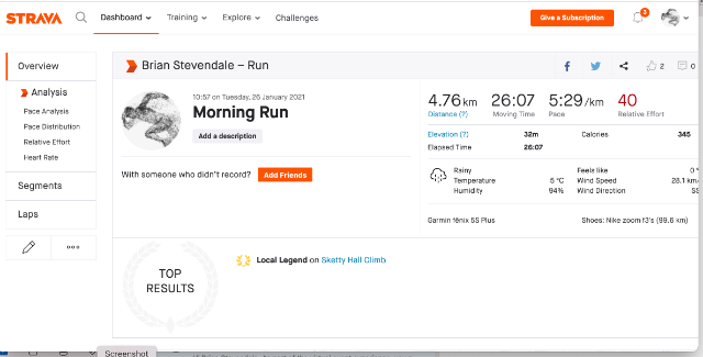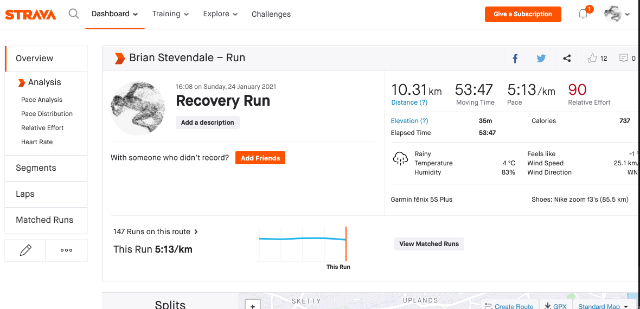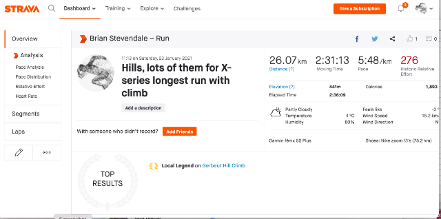 | 27 | 2021-01-31 21:13:31 | Brian Stevendale | 01:37:37 | 275.59 | swansea harriers | Link | ![]() |